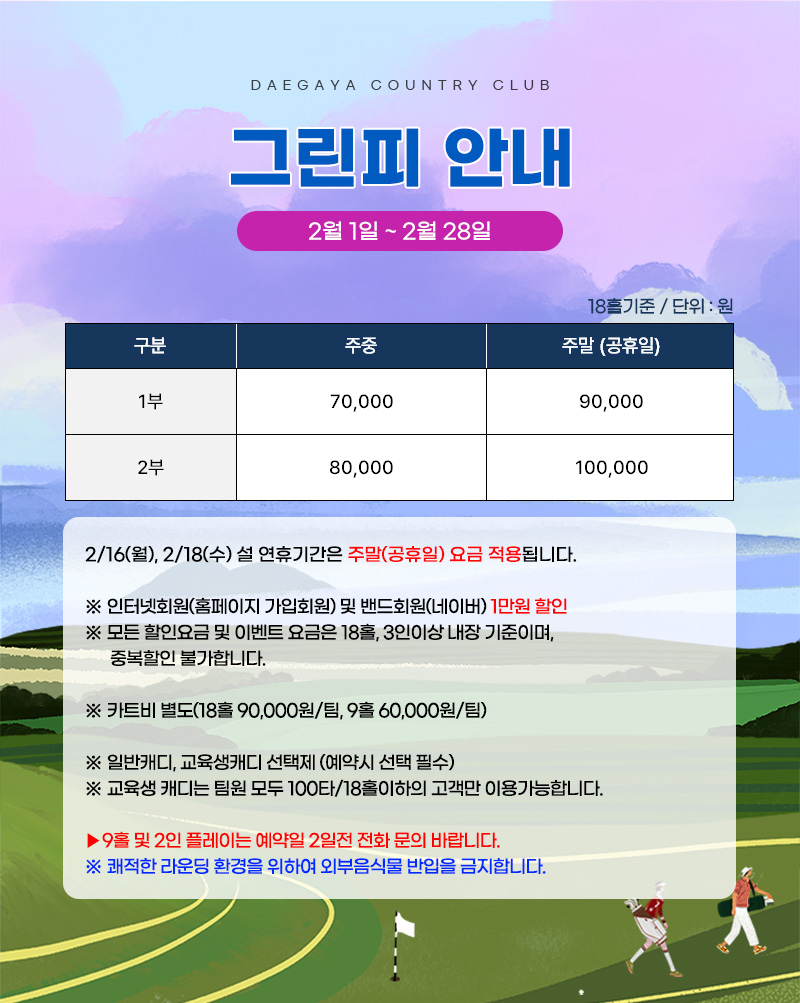 2월 그린피 안내 (2월1일~2월28일)